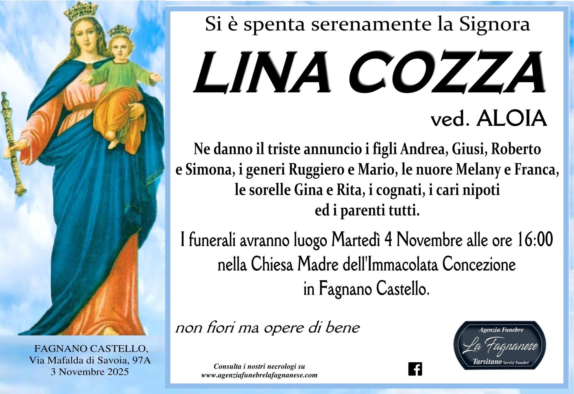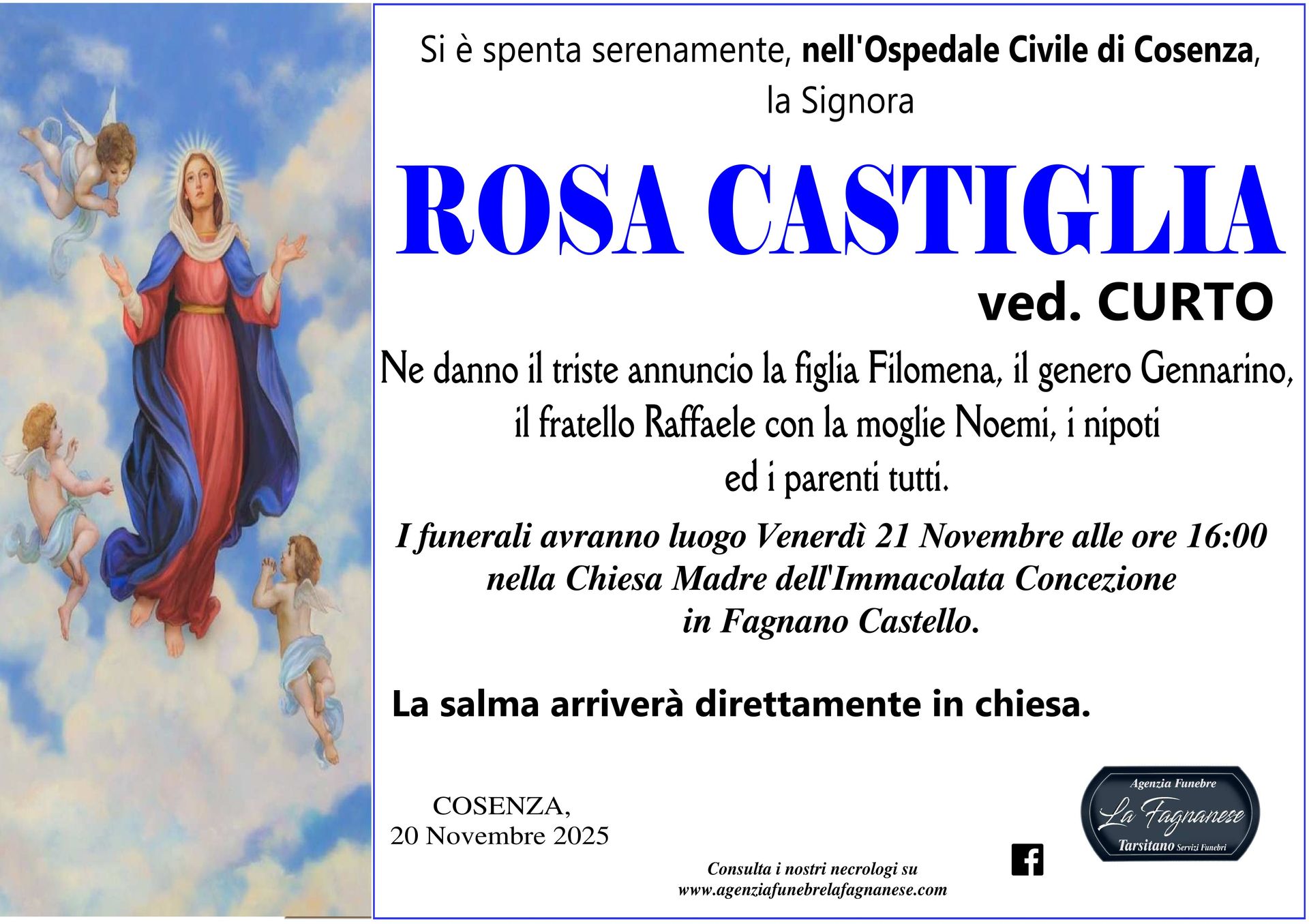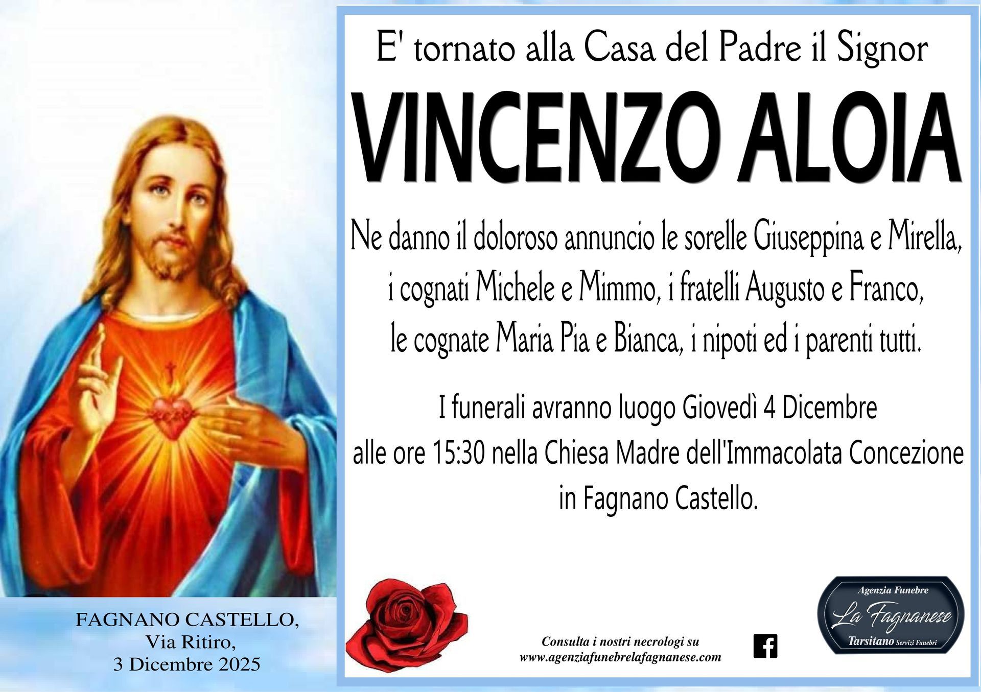 Servizio di pubblicazione di annunci mortuari a Fagnano Castello e in tutta Italia