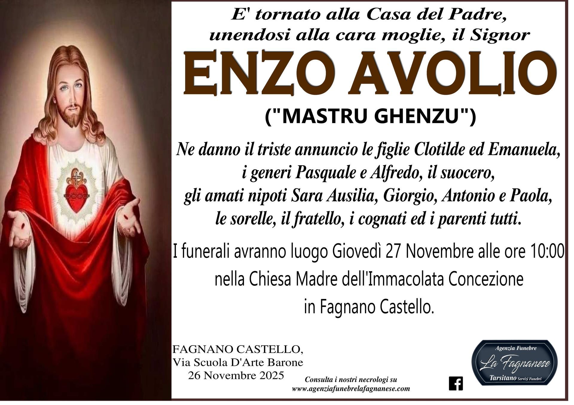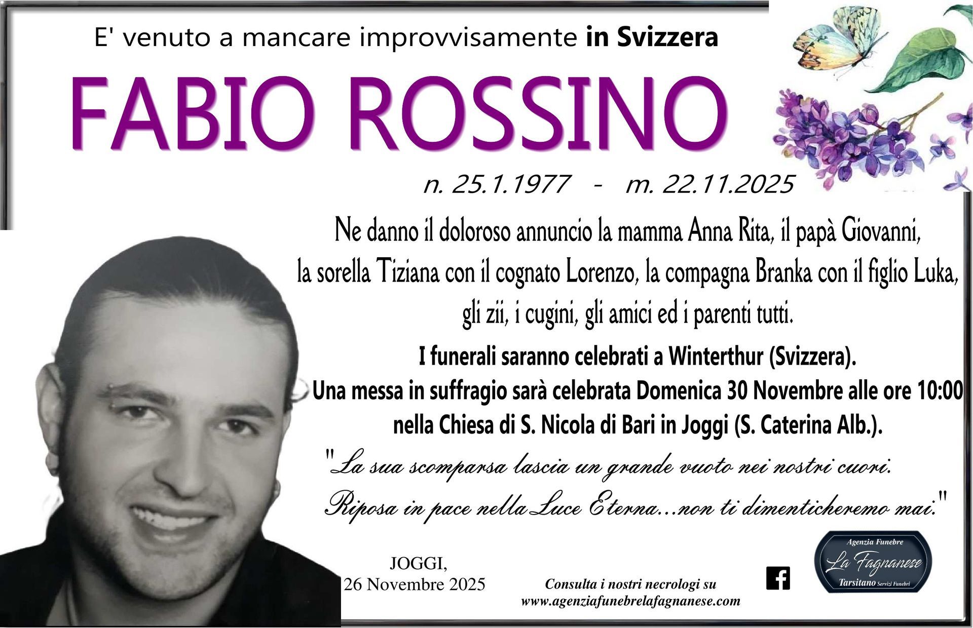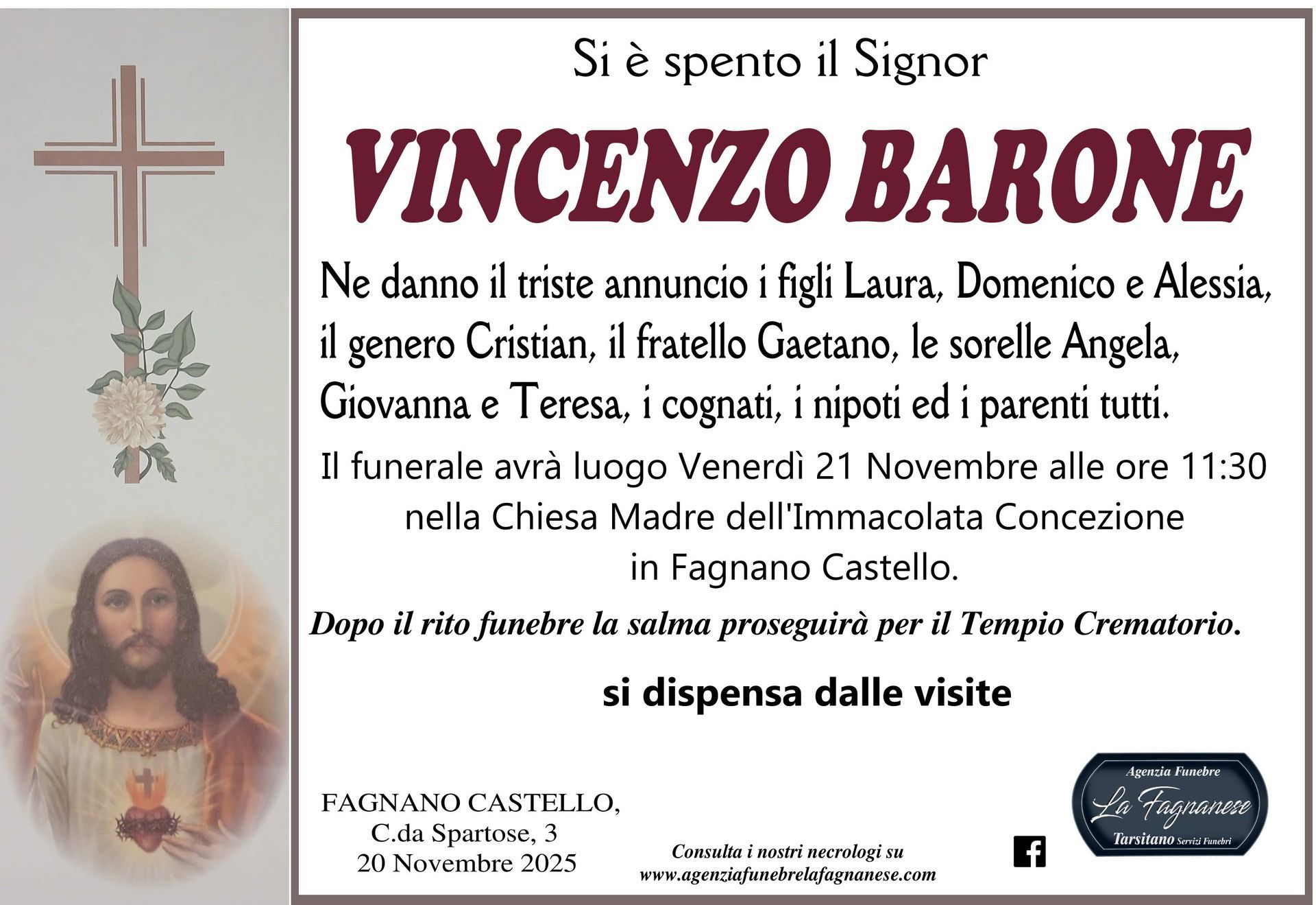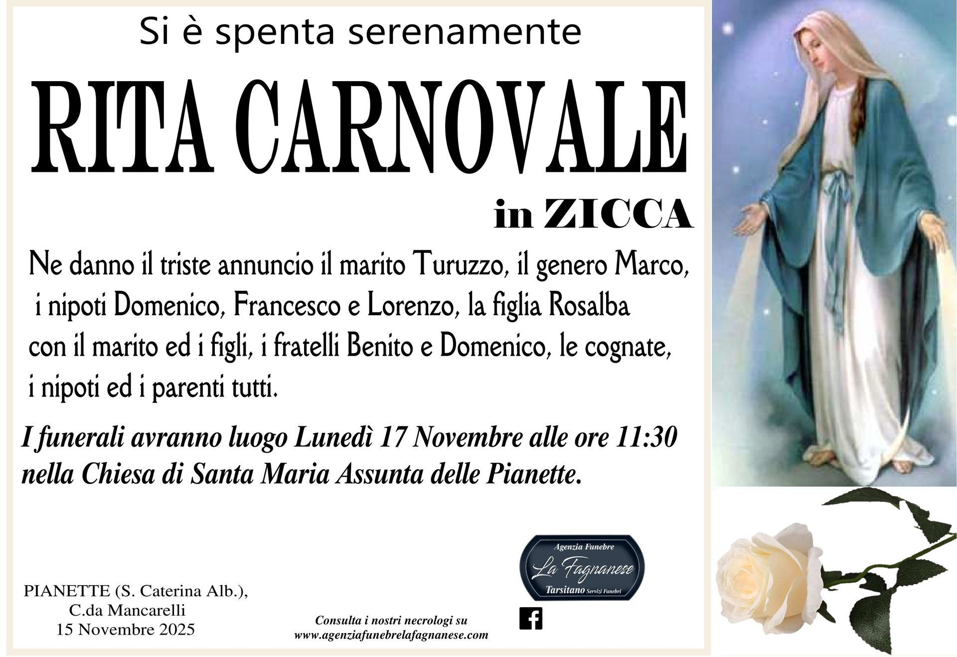 Servizio di pubblicazione di annunci mortuari a Fagnano Castello e in tutta Italia